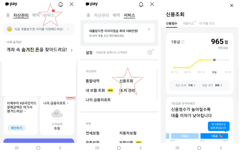 4. 서비스 탭에서 신용 조회를 눌러줍니다.